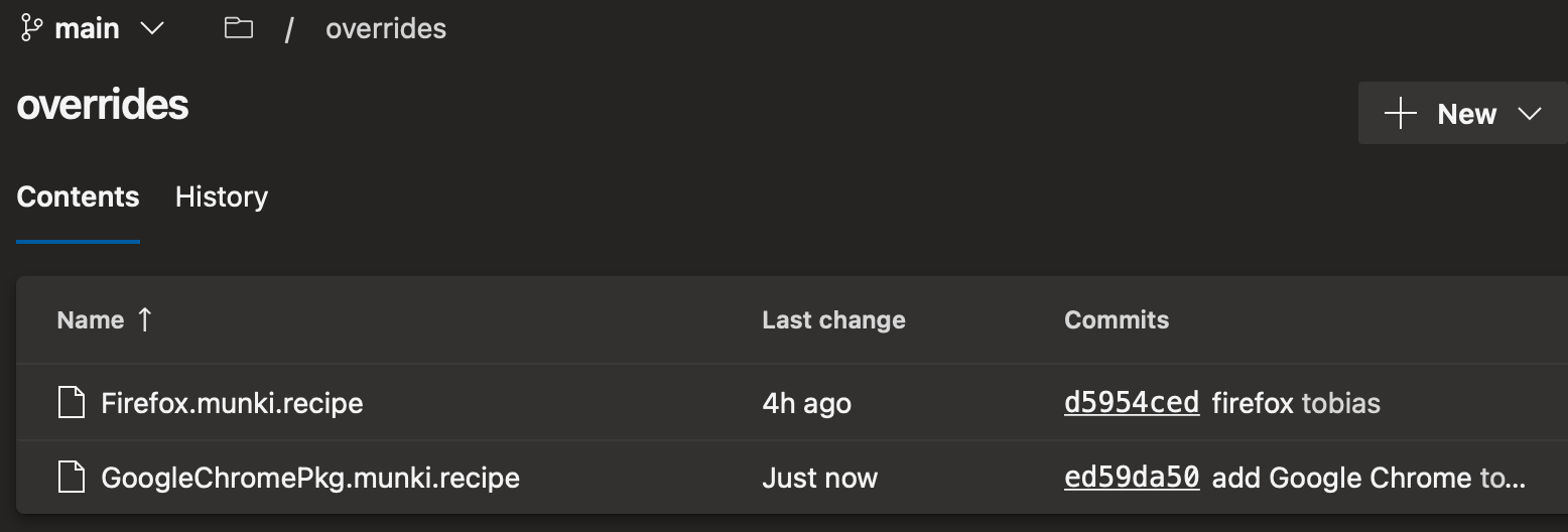 To add new apps, all you have to do is create a new override, commit it and then merge the changes in the Munki Repo! ☺️