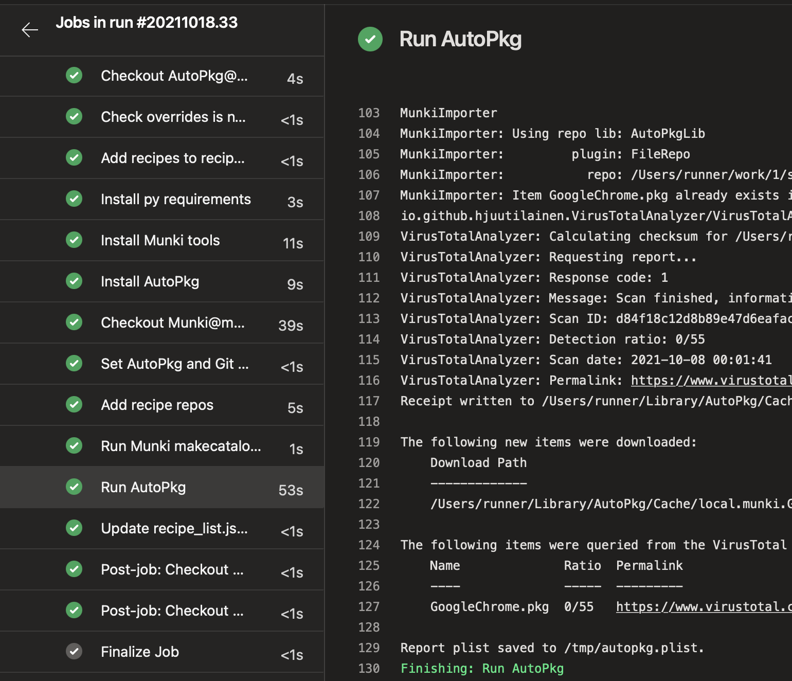 The pipeline will now download and prepare packages for everything you added in overrides. It also uses hjuutilainen’s VirusTotalAnalyzer