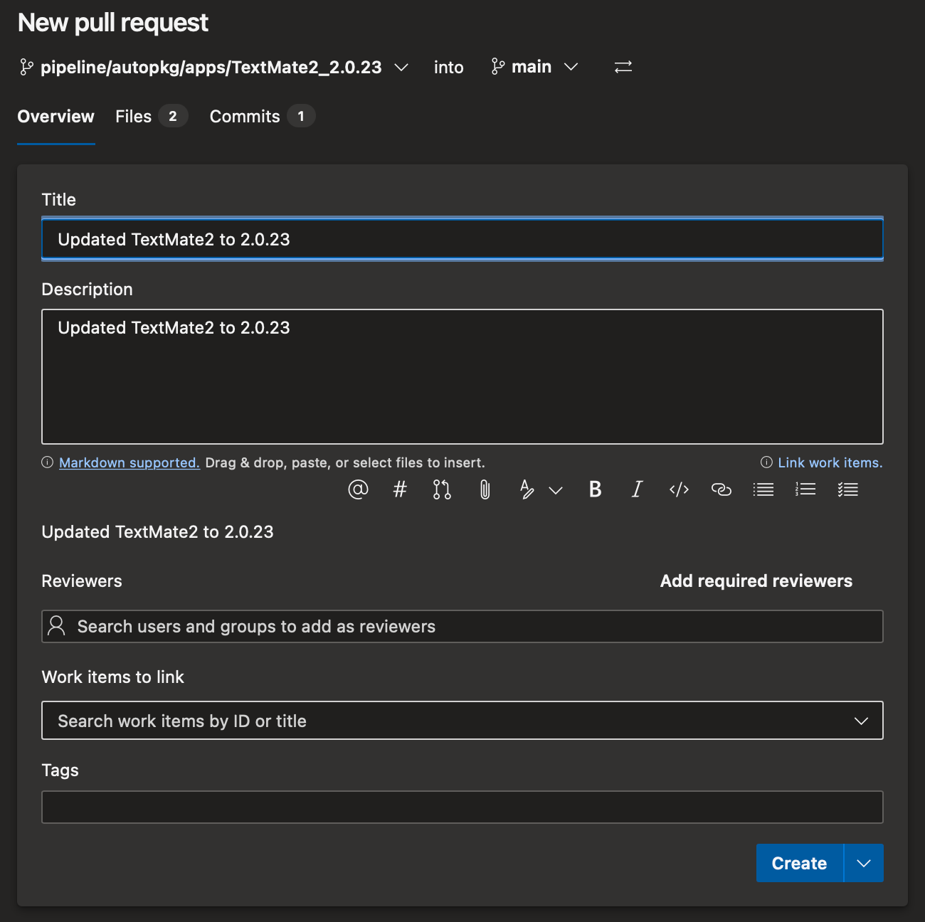 ” /path/to/App.munki.recipeimport Once you have your overrides push the changes to the Azure DevOps repo,