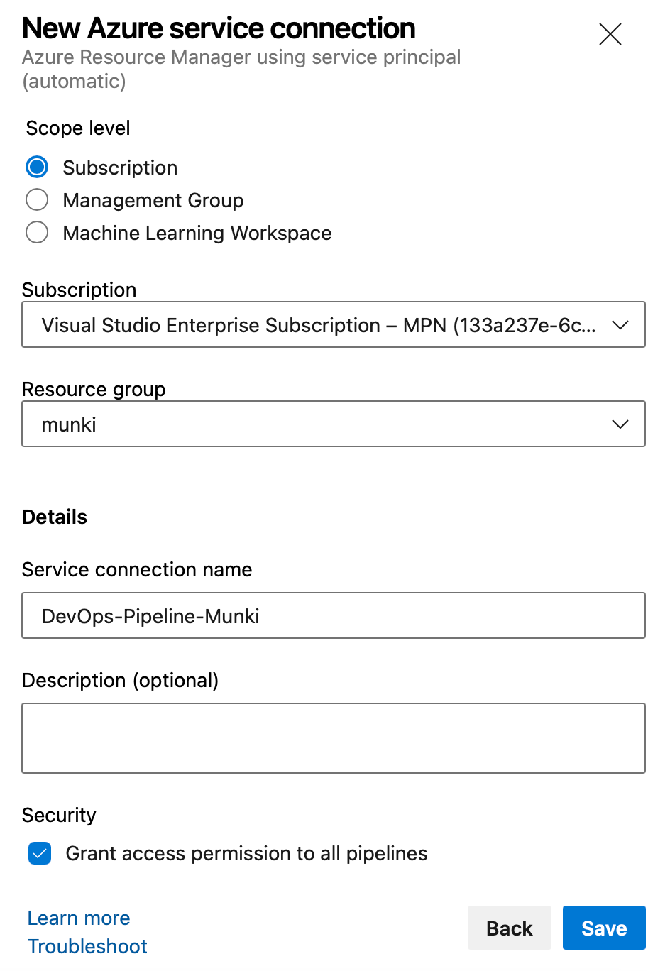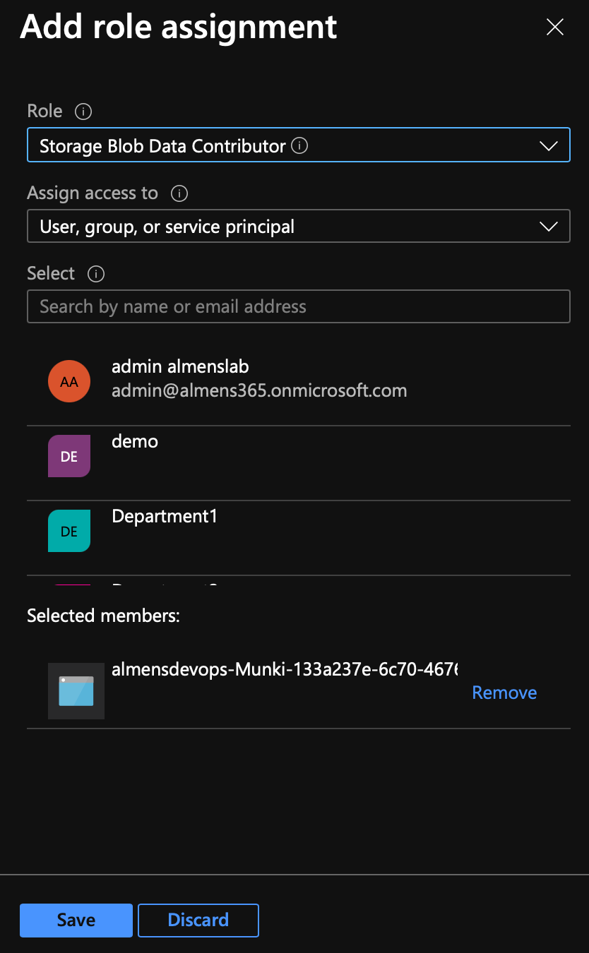To run our pipeline, the service principal needs access to read, write and delete blobs in our private munki container.