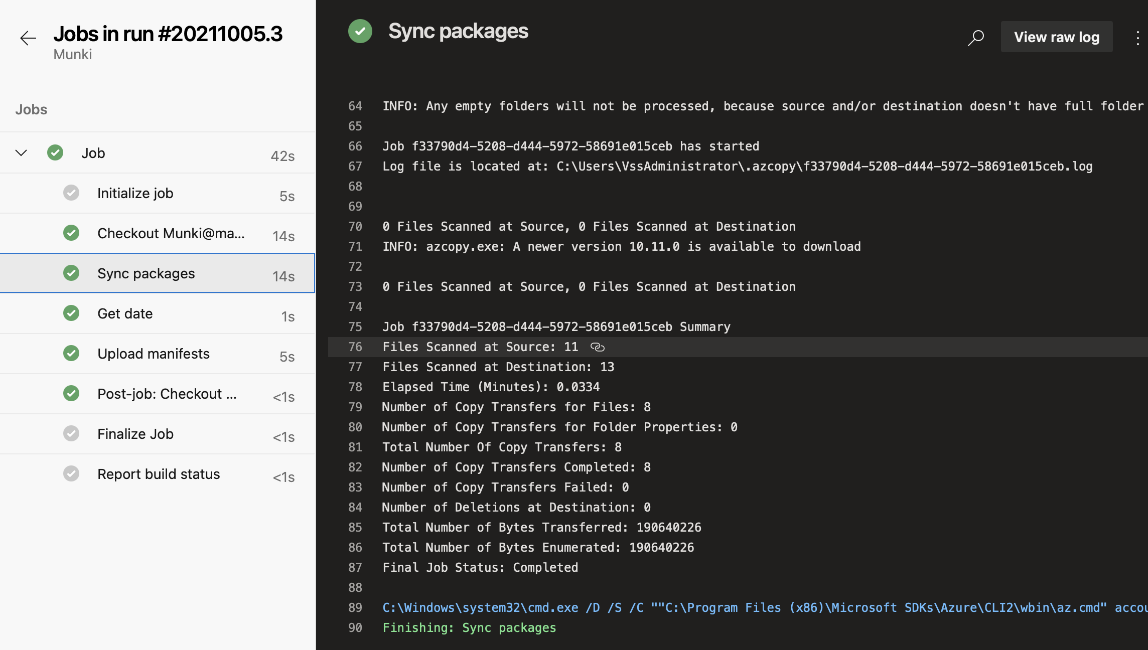 Now when you add a new package with Munki Admin and then commit and push the changes, the Pipeline will run automatically and sync and upload packages and manifests to the Azure Storage Account.