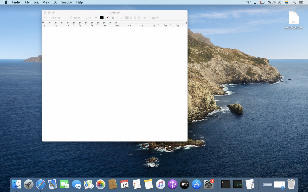 After the scripts execution we now have a touchiest.txt on the desktop and TextEdit app is open: