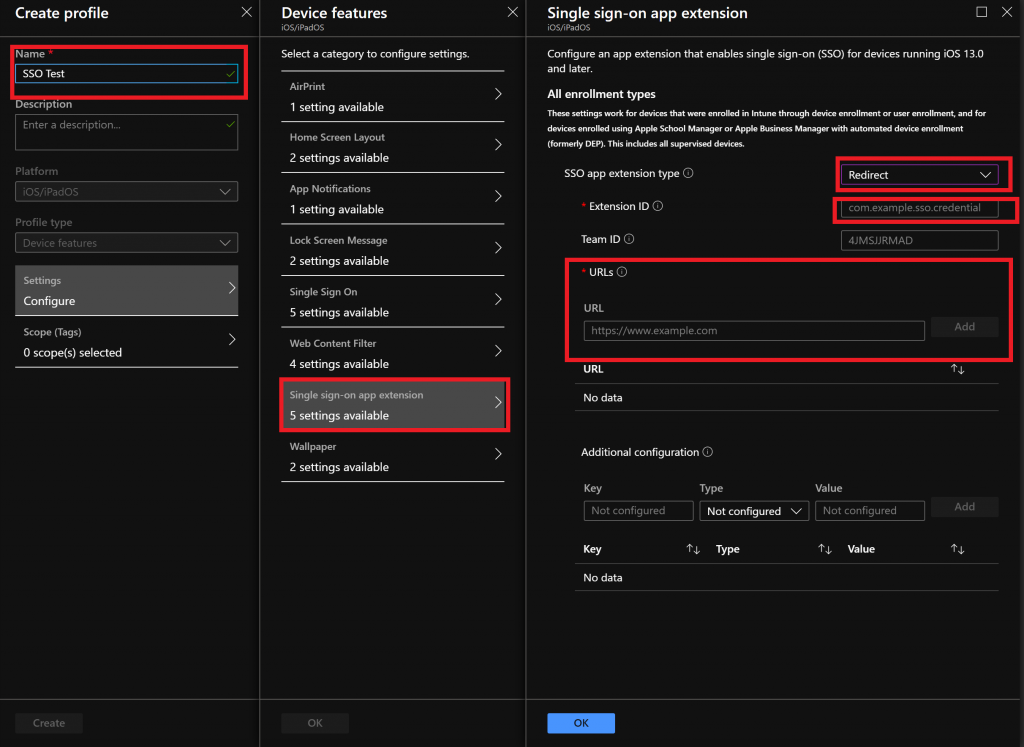 There are two types of SSO Extensions, Redirect and Credential. Microsoft chose to developed a redirect extension which makes sense as it’s designed for modern authentication methods such as OpenID Connect, Oauth and SAML. This of course plays nice with AzureAD as our idP. Luckily, Microsoft went down the road of using Authenticator as their host app, this means that you probably already have the host on users devices and logged in. Only a profile to activate the function is needed.