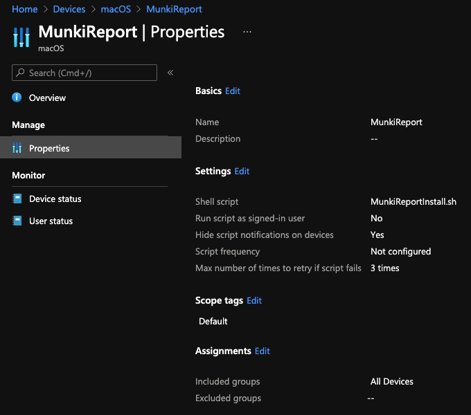 When the script is ready, we can now deploy the package to mac devices in MEM.