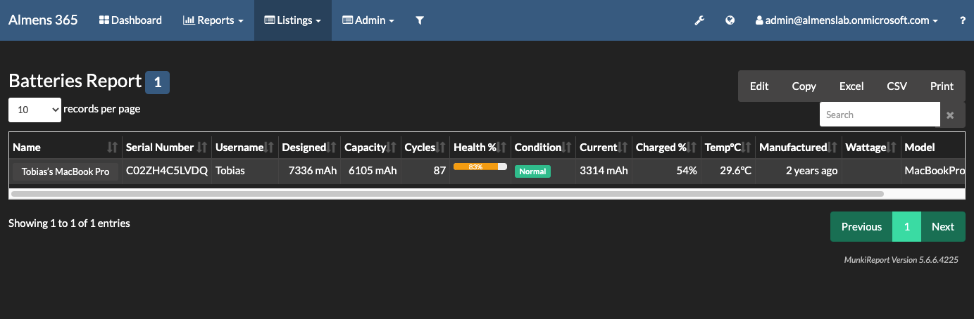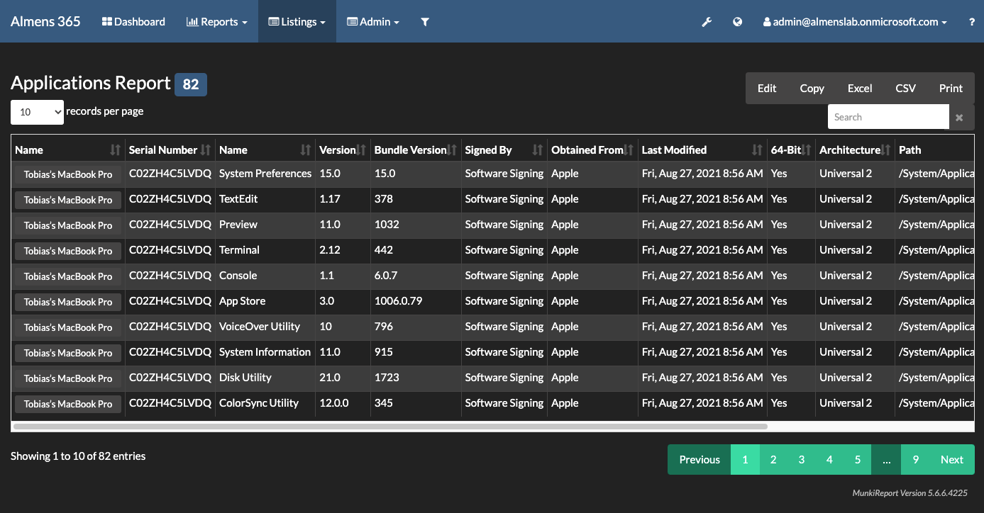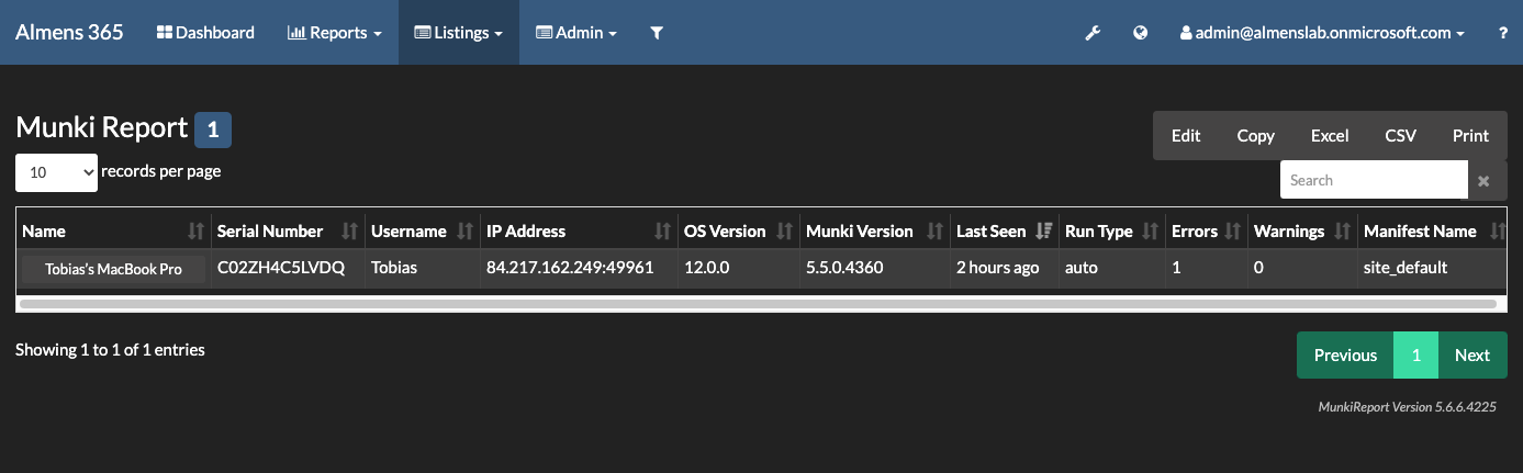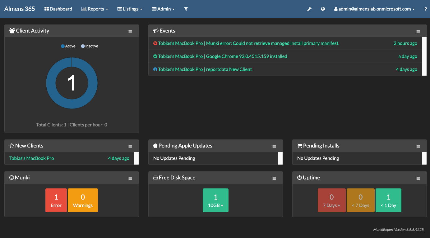 Devices to which you deployed the package will now start to report data back to MunkiReport, below you can see some screenshots from my environment.