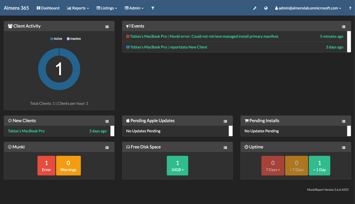 Devices to which you deployed the package will now start to report data back to MunkiReport, below you can see some screenshots from my environment.