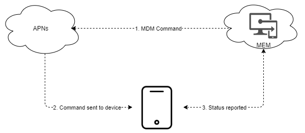 This is the flow when a Mobile Device Management command is sent from Microsoft Endpoint Manager, to APNs and the device
