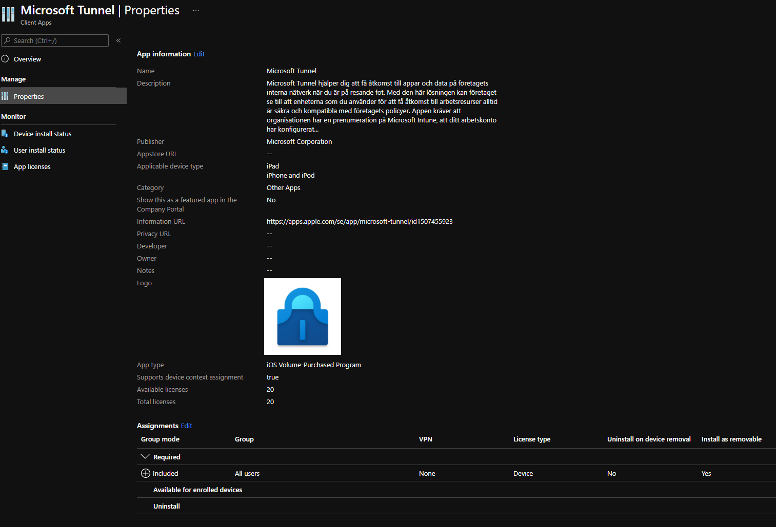 - Install as removable allows you to specify if the user should be able to uninstall the app or not