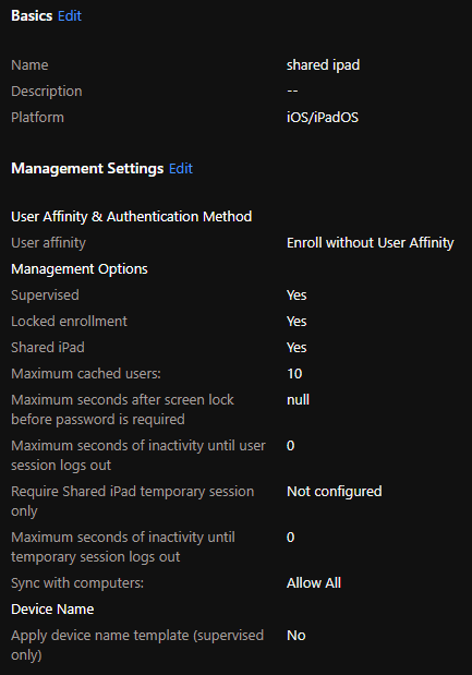 First thing we need to do is to configure an enrollment profile in Intune that the iPads will use.