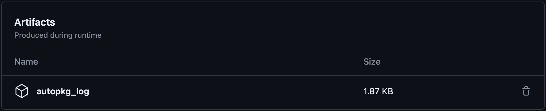 Each run from a GitHub action or Azure Pipeline will create an artifact with the logs as a zip. To review the logs you can just download the artifacts, unzip and review. If you require more verbose output for troubleshooting, add --debug to the parameters when executing the script in either autopkg.yml or autopkg-azure.yml.